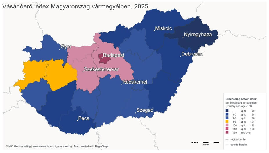 Magyarország: Budapesten és környékén, valamint a fővárostól nyugatra a legmagasabb a vásárlóerő
