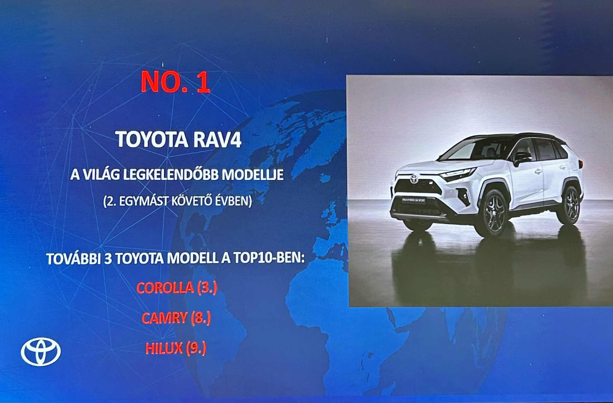 A Toyota márka pedig nem csupán a világ legkelendőbb és Európa második legnépszerűbb, hanem a világ legértékesebb (az Interbrand tanulmányának tanulsága szerint 74,2 milliárd dolláros márkakértékkel) autómárkája is, amely nem csupán a világ legnépszerűbb autóját, hanem egyedülálló módon a világ 10 legkelendőbb autójából négyet is jegyez: itt végzett a RAV4 (1.), a Corolla (3.), a Camry (8.) és a Hilux (9.) is.